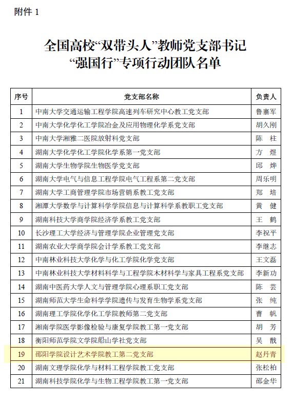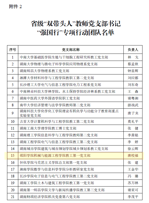 1029日,中共湖南省委教育工委印发《中共湖南省委教育工委关于公布全国高校及省级“双带头人”教师党支部书记“强国行”专项行动团队名单的通知》,我校2个党支部入选。